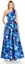 Vestido azul con estampado de rosas, de un hombro, estilo princesa.