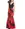 Vestido estilo sirena, sin mangas, color negro en blusa y falda rojo con negro estampado de flores