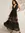 Vestido negro de encaje con tirante grueso, escote en V, falda caida en media campana con transparencia