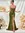 Vestido verde oliva con escote en forma de corazon, con corce, drapeado en cincura, tela satinada elastica.