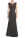 Vestido negro con brillos en tela, tirante grueso, con escote en ve cubierto con tul, tela estrech, caida estilo sirena.