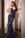 Vestido azul marino con pedreria estilo sirena, tirante delgado