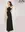 Vestido negro con cuello halter escotado de espalda, tela estrech, caida en columna, con pedreria que va del cuello a pecho y baja a la espalda