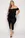 Vestido negro off the shoulder mini, con pedreria, caida columna