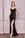 Vestido de negro de lentejuela, con drapeado en blusa, caida estilo sirena, con pijazo, con corce, en tirante tiene diamantes.