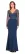 Vestido navy, con pedreria en tiras, tirante agarre al cuello y en espalda dejando descuvierta la espalda