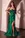 Vestido verde, estraple, escote en forma de corazon, con varillas, estilo sirena, con abertura en pierna, drapeado en falda.