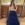 Vestido azul marino con bordado en blusa, cuello jaltel, vuelos en falta.