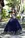 Vestido azul marino con dorado, bordado en blusa y al final de la falda, estraple con corce, estilo princesa